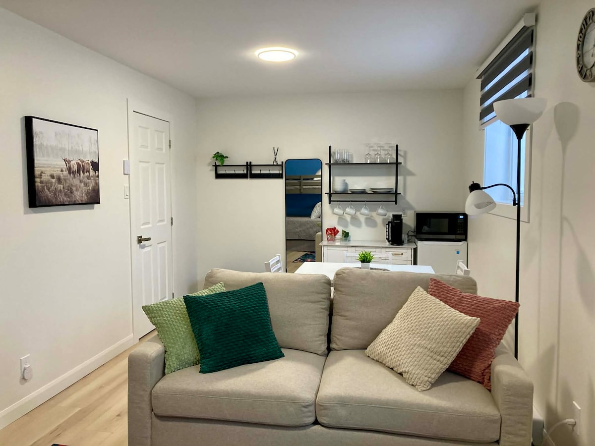 Votre pied à terre a Matane est situé au centre-ville., près de la rivière et du fleuve. c'est un joli studio lumineux tout neuf avec ce qu'il faut pour cuisiner : Frigo, plaque à induction 2 ronds , four à convection portatif à grande capacité ainsi que toutes les commodités. Un lit Queen , espace de travail avec wi-fi haute vitesse et une télévision intelligente. En saison vous avez accès au BBQ, a la cour arrière et au foyer extérieur.