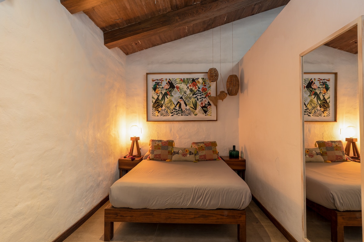A pocos pasos de la playa principal de Sayulita y a poca distancia a pie de los mejores restaurantes, bares y tiendas, nuestra habitación ofrece la escapada perfecta. Disfruta de una variedad de clases de yoga y sanación disponibles para todos los huéspedes. La habitación Poema cuenta con una encantadora cama individual y un baño privado único con ducha de efecto lluvia y exquisitos detalles marroquíes. Despierta cada mañana con los sonidos relajantes de los pájaros y las suaves olas del océano. Amplia cocina compartida y terraza.