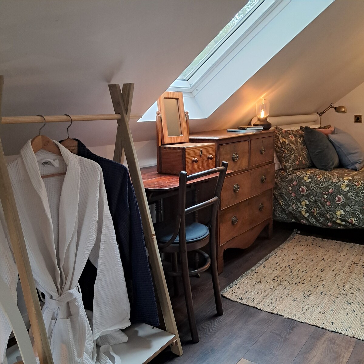 A 200-year-old church hall, transformed into a uniquely spacious & stylish townhouse, accommodating 4 guests in comfort. Terracotta flooring throughout with underfloor heating and a solid-fuel stove. The open-plan layout consists of a fully equipped kitchen and a double-height living/dining area. The bedroom has a King-size bed (200cmx150cm) and en-suite bathroom with shower. The second bedroom is a spacious mezzanine with two single beds. This mezzanine overlooks the open-plan living room.