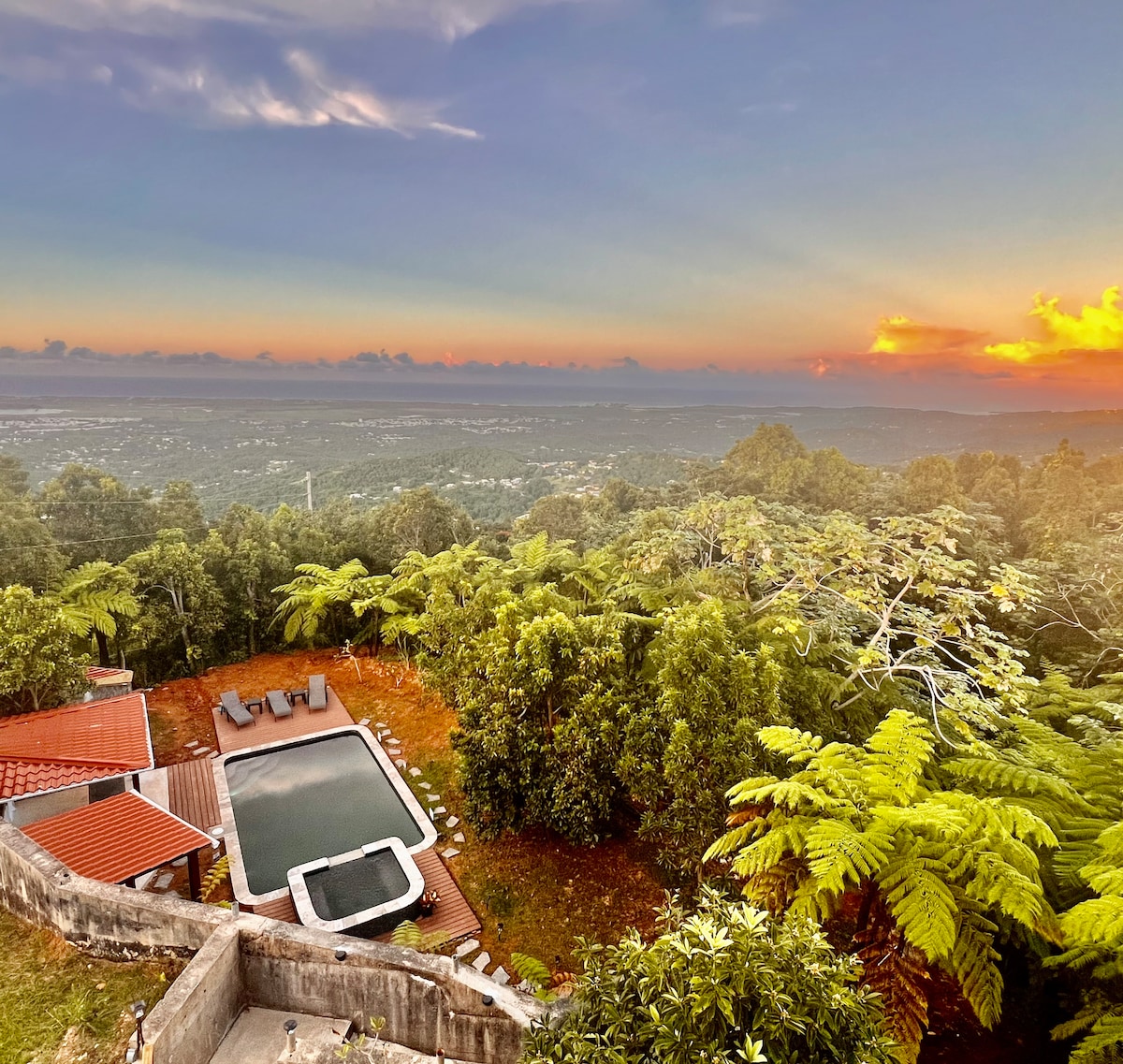 El Yunque Chalet and Casita del Yunque are located within a 2 acre gated property located in the foothills of El Yunque Rainforest. It is the perfect spot to experience island living, while still being close to all major north coast attractions. Enjoy the private 8x10 heated Jacuzzi Pool, private laundry facilities, and explore our 2 acre grounds full of tropical flowers, fruit trees, babbling brook and more. You will never want to leave!