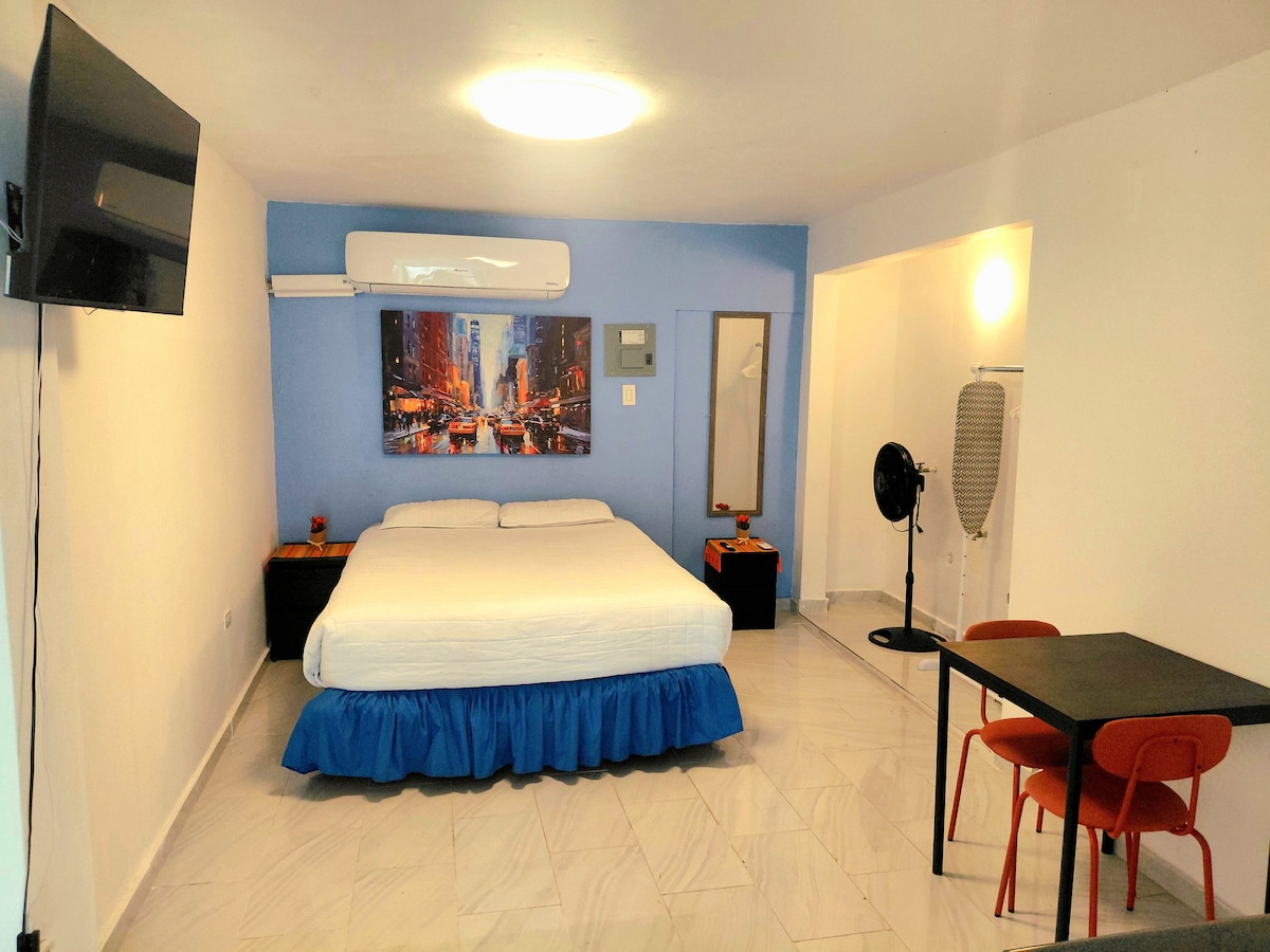 Este hermoso lugar tiene una cocina-sala de estar, un dormitorio con baño, Walking closet, la sala de estar cuenta con un televisor / Roku para su entretenimiento, muy cómodo para aquellos que desean pasar unas maravillosas vacaciones en Puerto Rico. Ubicado en un área central: Aeropuerto (5 min) Farmacia (2 min) Supermercado (2 minutos) Isla Verde (6 min) Alquiler de coches (3 min) Hay panaderías, comidas rápidas, restaurantes y la playa a menos de 5 minutos en coche.