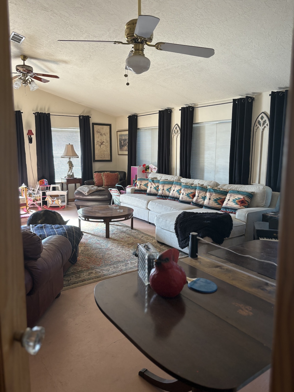 Welcome to this updated 1970s gem, offering modern comfort while keeping its original charm. The open floor plan connects the living, dining, and kitchen areas for easy gathering. Relax in the cozy living room with fireplace or enjoy the backyard. Large windows bring in plenty of natural light, creating a warm and inviting atmosphere. Whether for a short stay or extended visit, this home is welcoming and comfortable. No House guests without prior approval from host.