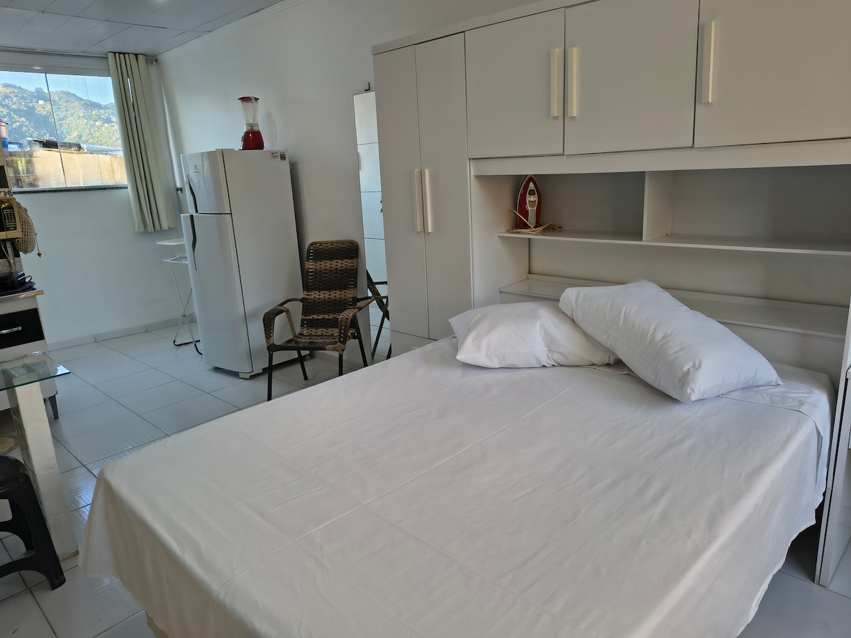 Cómodo loft con sofá, mesa de comedor, cocina equipada con nevera y microondas, ubicado a 50 metros de Río Centro, servicio de limpieza, aire acondicionado, TV por cable, wifi, piscina, fitness... Ideal para personas por trabajo, viajes de negocios, congresos y espectáculos en la región del centro de convenciones de RÍO Centro y eventos en el PARQUE OLÍMPICO como Rock in Rio, Game XP entre otros.