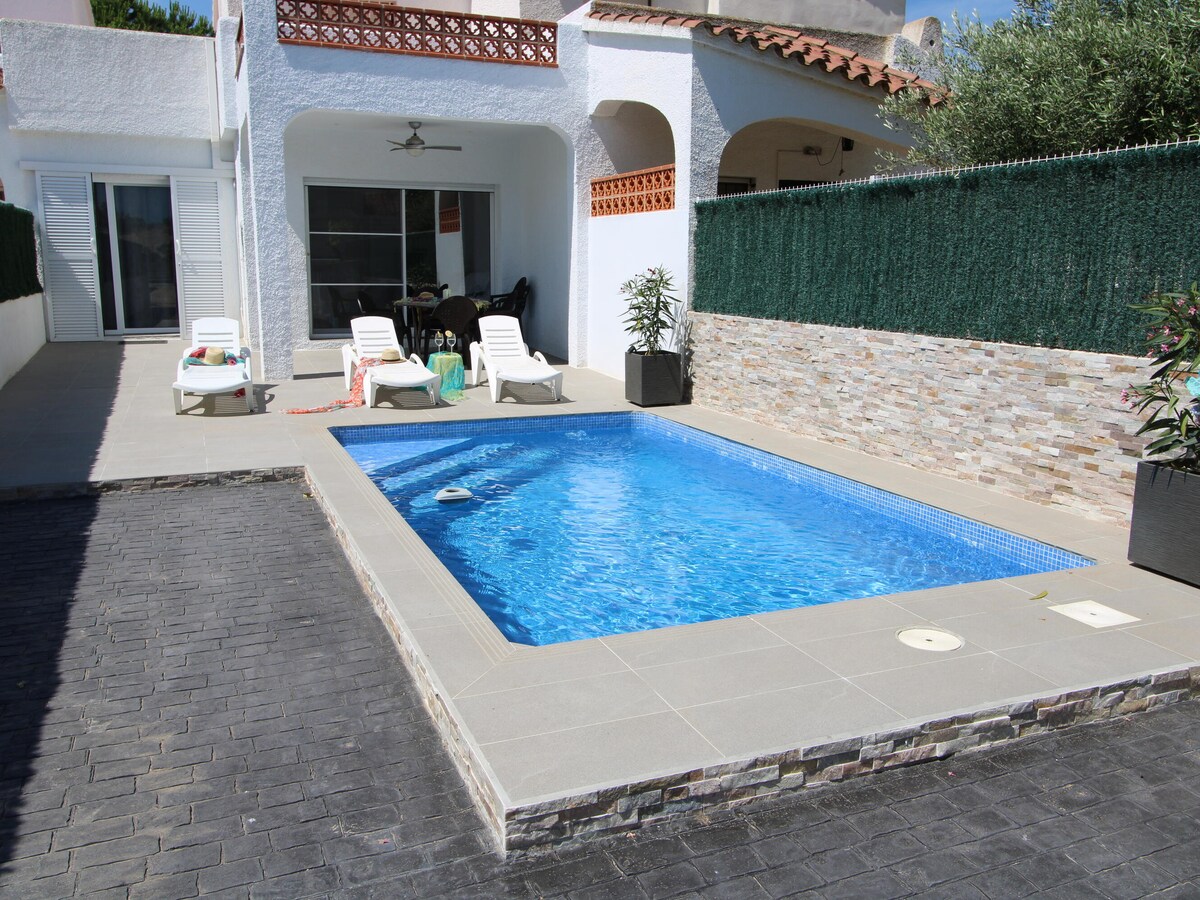 Chalet independiente con muy buena ubicación, muebles nuevos , tres dormitorios, una de matrimonio y las otras dobles con armarios. Salón comedor que comunica con la cocina americana. Baño completo con bañera Gran terraza con muebles de jardín y una terraza superior. Piscina privada con solarium , habilitado con mobiliario y barbacoa, todo vallado, ideal para mascotas y niños. Wifi gratis. Sin extras. Aparcamiento privado al exterior o al garaje.