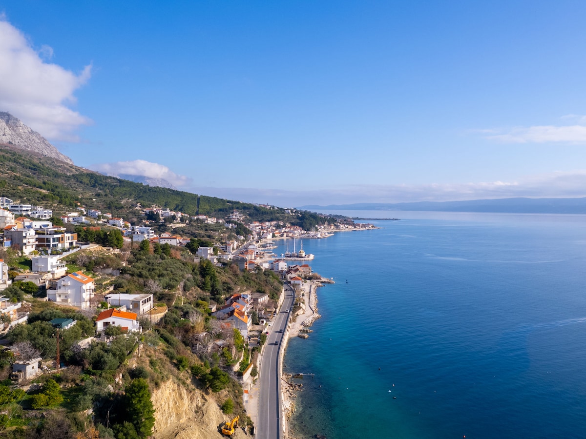 Con vistas panorámicas a la bahía de Stobreč y a la desembocadura del río Žrnovnica, Garden View Villa, a solo 500 metros de la playa cercana, ofrece unas vistas impresionantes, pero también un espacio ajardinado cómodo y tranquilo para disfrutar de momentos privados. Esta villa adosada de 120 metros cuadrados (1300 pies cuadrados) tiene tres balcones cubiertos para disfrutar plenamente de la vida al aire libre, una terraza de madera de 40 metros cuadrados para tomar el sol mediterráneo, sala de estar/comedor con TV LCD por cable de 50 pulgadas, una cocina de estilo moderno totalmente equipada y ventiladores de techo en la sala de estar y en los tres dormitorios. Incluye una lavadora/secadora en uno de los baños. Todos los muebles son elegantes y modernos y hay 3 baños, uno de ellos con bañera de hidromasaje. Tres balcones cubiertos para disfrutar plenamente de la vida al aire libre, una terraza de madera de 40 metros cuadrados para tomar el sol mediterráneo y un jardín privado lleno de plantas mediterráneas. Te ofreceré ayuda/recomendaciones durante toda tu estancia en Podstrana.