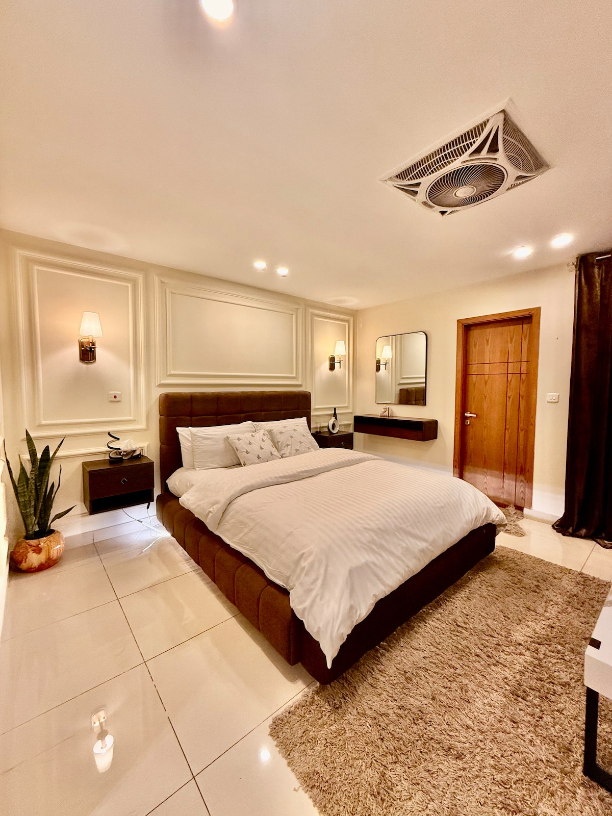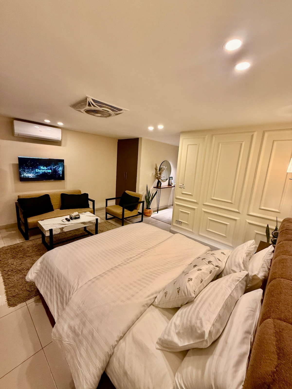 🛏️ Cama tamaño king y balcón privado con vista a Giga. 📺 Televisor inteligente LED de 55 pulgadas y wifi de 30 Mbps. 🍽️ Cocina moderna con electrodomésticos de primera calidad. ❄️ Aire acondicionado inverter y 💨 ambientadores automáticos. 🔐 Cerraduras digitales y decoración elegante. ⚡️Electricidad de respaldo 24/7 🔋 🏙️ Sobre el centro comercial Zeta, a pasos del centro comercial Giga. 🌄 Vistas a la ciudad y a la colina. Perfecto para familias, parejas y huéspedes corporativos. 🪪 Se requiere CNIC (mayores de 18 años). 🚭 No se permite fumar/eventos. ✅ Reserva ahora para disfrutar de lujo y serenidad.