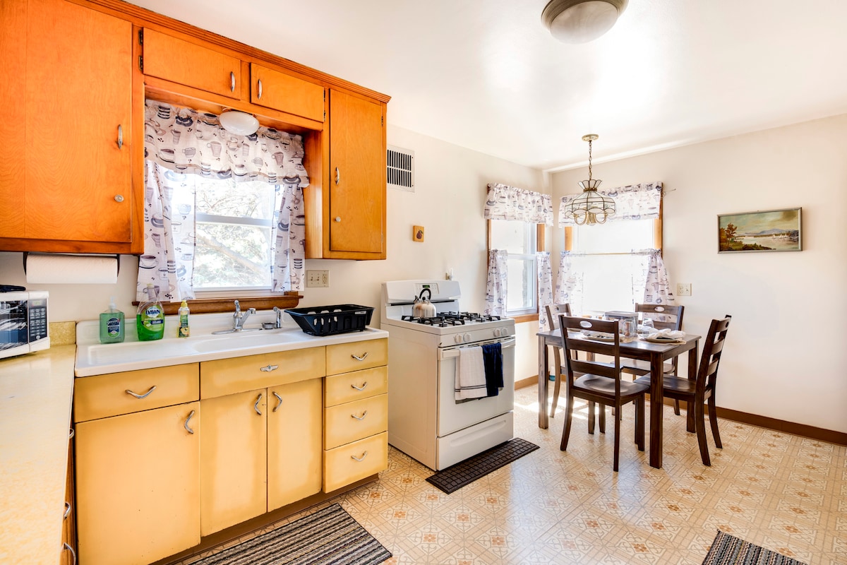 Encantador bungalow hygge de nivel superior (2 viviendas en total). A diez minutos de cualquier lugar. Escondido en el tranquilo pueblo de West Milwaukee. Lleno de luz natural y decoración vintage seleccionada. A poca distancia a pie de algunos restaurantes y bares, así como del American Family Field. Disfruta de un cóctel en el balcón delantero y observa la puesta de sol mientras disfrutas de una colección de vinilos clásicos. Pequeño balcón junto a la cocina para ver el amanecer y disfrutar de una taza de café. Perfecto para aventurarse o relajarse.