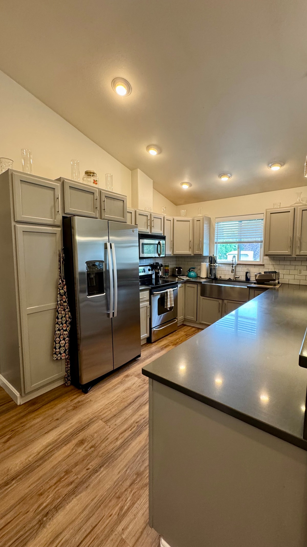 Acogedor apartamento de invitados de un dormitorio ubicado en nuestro espacioso rancho de 10 acres con vistas espectaculares y privacidad, pero a solo 5 minutos de la ciudad. El apartamento de concepto abierto cuenta con una cocina completa, una amplia sala de estar y un comedor. Tanto la cama como el sofá cama tienen colchones de espuma viscoelástica. Combinación de ducha y bañera práctica para los niños. Lavadora y secadora gratuitas. Acogedora estufa de leña. Smart TV y wifi. Colchón hinchable tamaño queen adicional también disponible. Apto para niños con parque infantil y juguetes. NO SE ADMITEN MASCOTAS. ¡Casa de huéspedes muy luminosa y agradable!