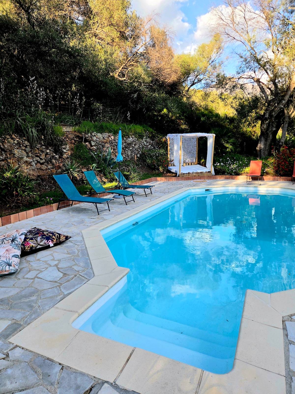 Calenzana, A 1 km del GR20, cabaña al fondo de nuestro jardín, hermosa vista directa de la montaña. En la planta superior: dormitorio con dos camas individuales y calefacción (para el invierno) con vistas a una red colgante, debajo de una cocina abierta. Una ducha exterior y un inodoro seco. Nuestro perro Thio estará presente en el jardín. A su llegada pasará por nuestra casa, pero una vez allí tiene la opción de tener acceso independiente.