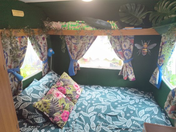 La Bohème est une caravane vintage idéale pour un couple ou une famille, nichée en bordure de forêt, dans un cadre calme et verdoyant. Elle propose une mini immersion dans l’univers chaleureux d’une loge de cabaret, inspirée des coulisses du spectacle. La caravane dispose d’un lit double confortable ainsi que de deux lits enfants. Les voyageurs ont accès aux espaces partagés de La Cabane des Artistes : cuisine équipée, salon convivial, WC et douche, jardin, jeux de société et jeux de plein air.