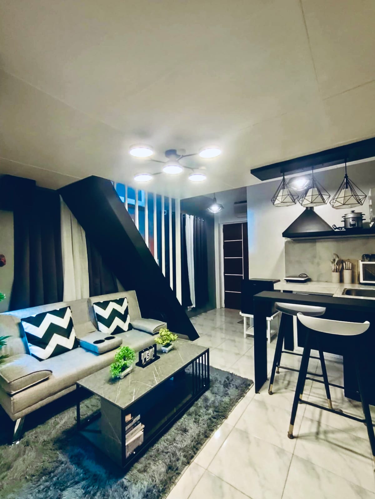 CLOVE's DEN BINANGONAN **Tu elegante retiro: loft con experiencia de proyector de grado de cine ** Escápate a este elegante loft en blanco y negro, donde el diseño minimalista se encuentra con la máxima relajación. Disfruta de una experiencia cinematográfica privada con un proyector de alta gama, perfecto para noches de cine o relajarte con estilo. Con muebles modernos y un ambiente elegante, este loft es el lugar ideal para creativos o parejas que buscan un refugio lujoso y cómodo. Reserva ahora y disfruta de tu propia experiencia cinematográfica personal.