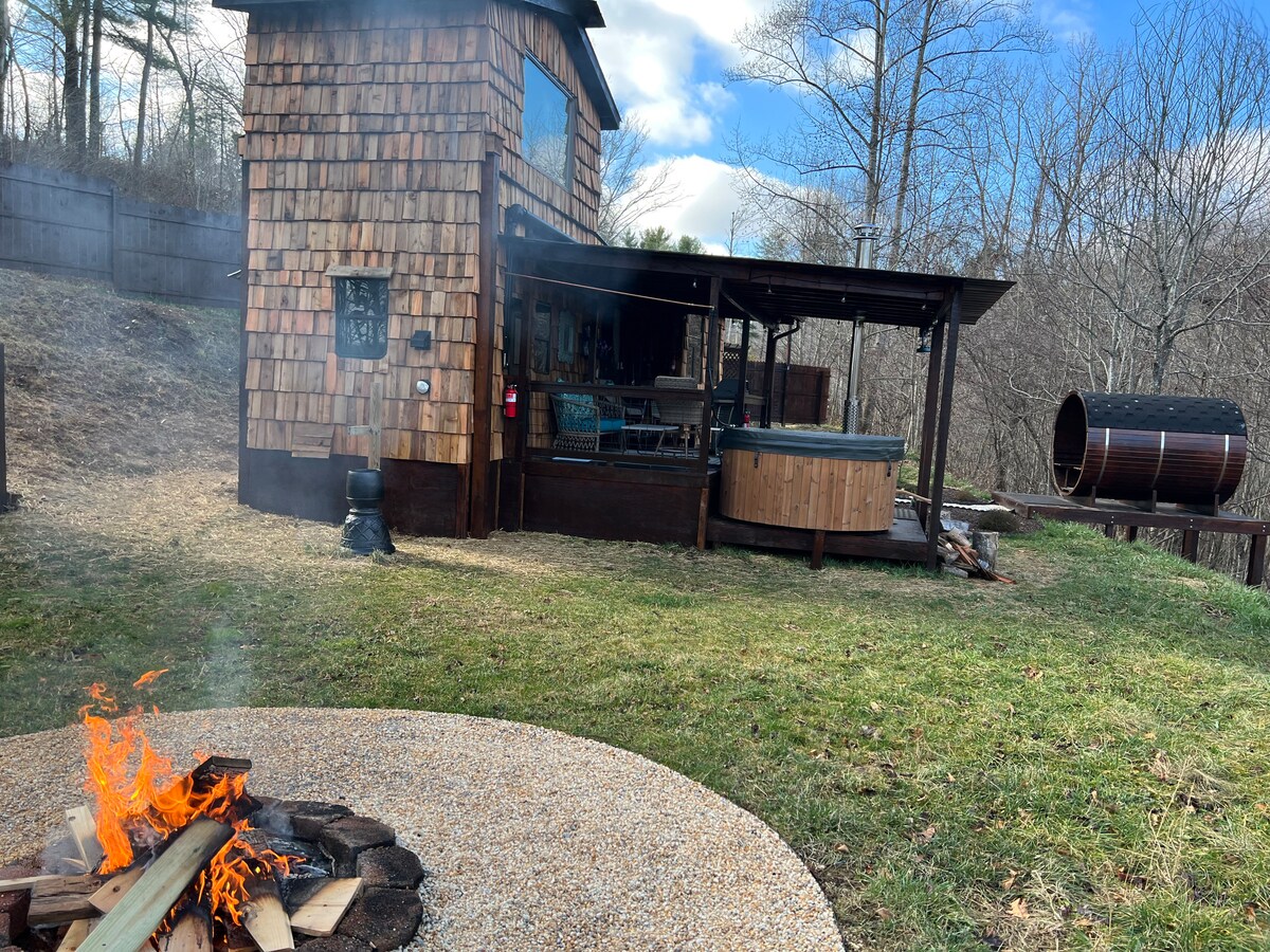 Vuelve a conectar con la naturaleza, una verdadera experiencia de spa con agua de vapor de barril legítimo sobre rocas calientes y un jacuzzi caliente de leña conectado a válvulas frías y calientes. Los propios huéspedes llenan la bañera con agua fresca de manantial. El fuego de leña mantiene el agua caliente, pero no es necesario. Esta estancia de montaña está situada en las montañas del condado de Floyd, Virginia. La música en vivo de Floyd, la carretera, la montaña Buffalo, el senderismo, el kayak, las tiendas de campo, los ríos, los lagos y los arroyos son solo algunas de las actividades mencionadas.