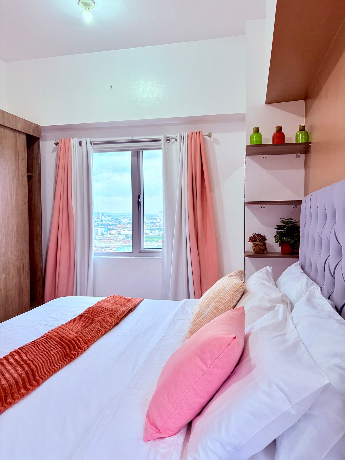 El nicho está en el piso 24 del edificio con vistas a la ciudad, justo enfrente de SM City Cebu. El transporte es muy cómodo y accesible, ya que las terminales y carriles de autobuses, taxis y vehículos de servicio público son visibles desde el edificio. Es una unidad de condominio tipo estudio de 22 metros cuadrados con un ambiente de hotel que tiene todo lo que necesitas, desde una cama muy cómoda y una almohada suave, internet de alta velocidad (56 Mbps), Netflix, gimnasio y piscina. Nota: — NO SE PERMITE COCINAR —