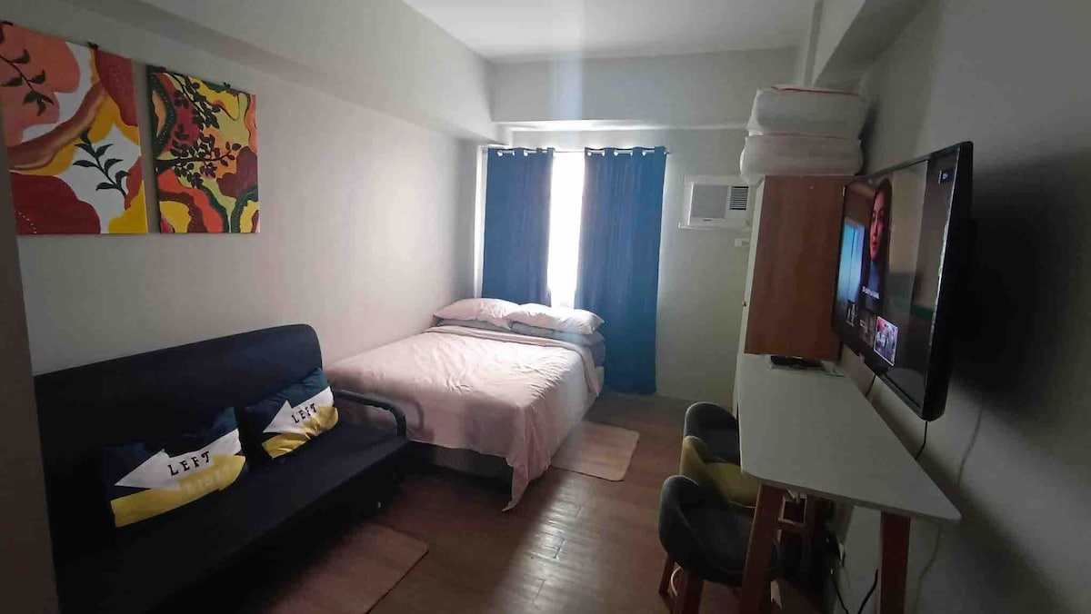 Experimenta comodidad y estilo en esta habitación de diseño justo en el corazón de Manila. A pocos pasos de un gran centro comercial. Servicios: piscina, sauna, gimnasio (de uso gratuito para los huéspedes registrados). La televisión está preparada para ver Netflix. Por favor, cierra la sesión de tu cuenta cuando salgas. Hay ropa y accesorios de moda disponibles para la venta. Echa un vistazo a nuestra tienda justo al otro lado del edificio :) Habitación boutique de moda Urduja + cama