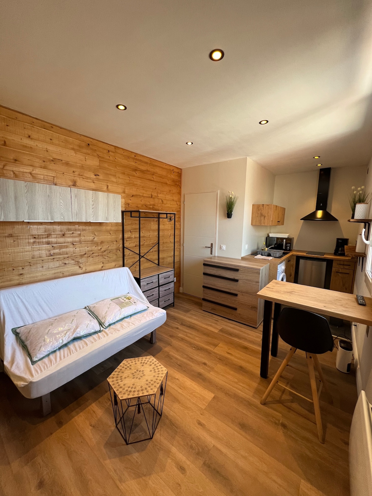 Completamente renovado con materiales de lujo, nuestro estudio de 24 m2 situado en el segundo piso, está clasificado oficialmente con 3 estrellas de turismo amueblado. Situado en pleno centro de Rochefort, a 2 minutos a pie del puerto deportivo y de la Corderie Royale y a 200 m de las termas. Cocina totalmente equipada con lavavajillas, placas de inducción, horno microondas con grill, Nespresso, tostadora, hervidor y nevera con congelador. Wifi de muy alta velocidad gratuito y TV de pantalla grande con Netflix.