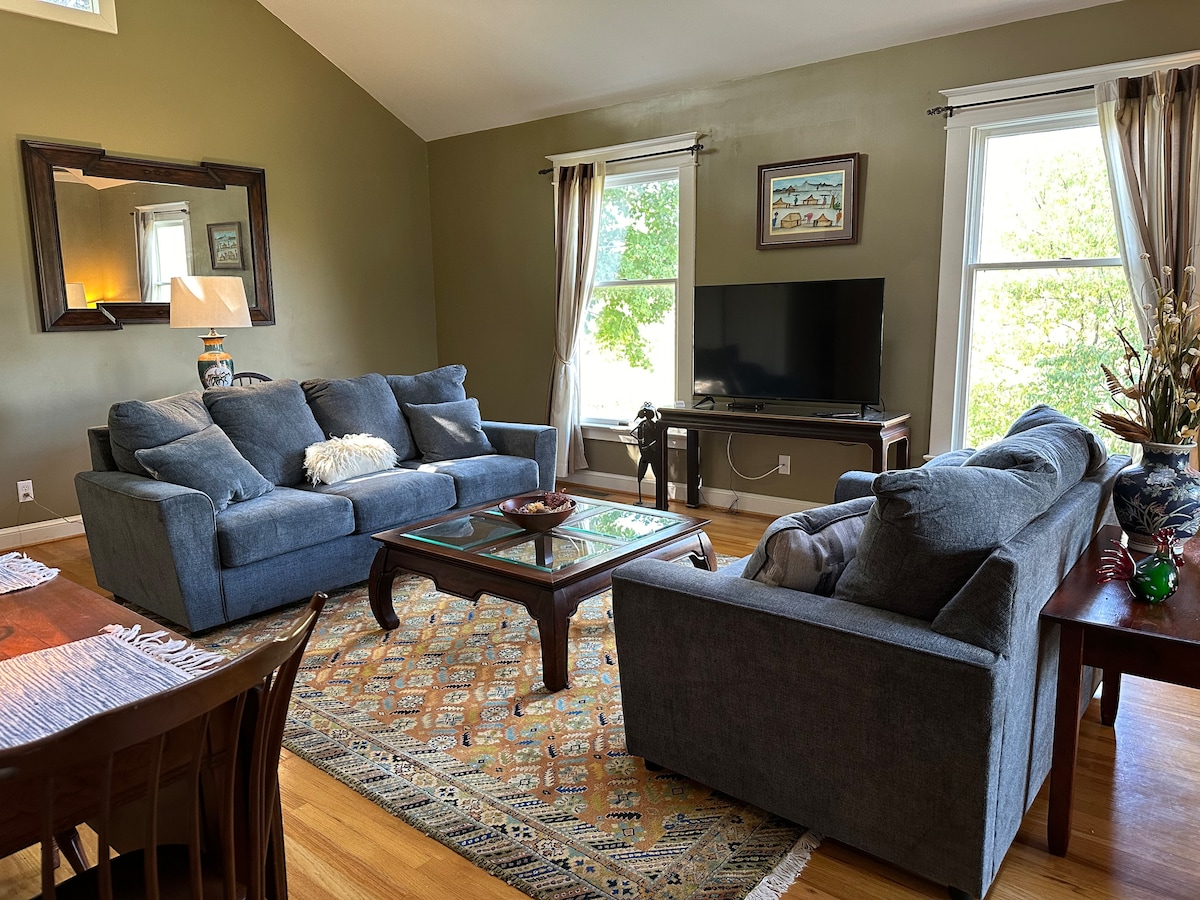 Minutes from downtown Lexington , this modern Carriage House is architecturally rich, with skylights, cathedral ceiling and custom cabinetry. Queen size bed, 2 roll away beds/cots. Large bath with spacious ceramic tile shower. Fully equipped kitchen with staples, Keurig type coffee maker. TV, gas grill, fast fiber internet PETS-$40 per stay. $50 if not paid before arrivals. Inform is brining more than 2 EV CHARGING-$25 fee Note CANCELLATION POLICY for graduations, etc
