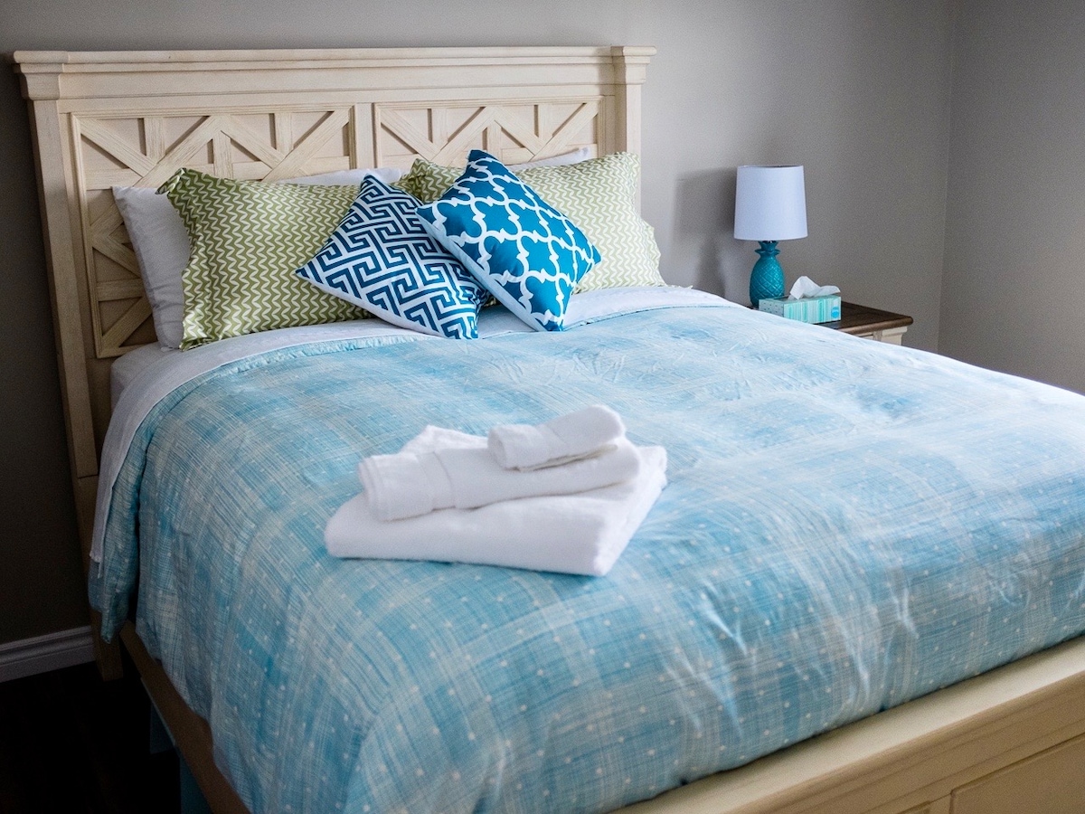¡Apartamento con aire acondicionado! Una cama tamaño queen y una cama doble. Tiene capacidad para 4 personas. Tienda de comestibles y licores cerca a poca distancia a pie. A 5 minutos en coche del aeropuerto de Deer Lake, a poca distancia en coche del parque nacional Gros Morne y a 25 minutos en coche de la estación de esquí Marble Mountain, donde puedes esquiar y tirarte en tirolina sobre una hermosa cascada. Hay un parque infantil al final de la calle. Deer Lake tiene una hermosa playa de arena y el Insectarium & Butterfly Garden merece la pena visitarlo. Lo sentimos, no se admiten mascotas.