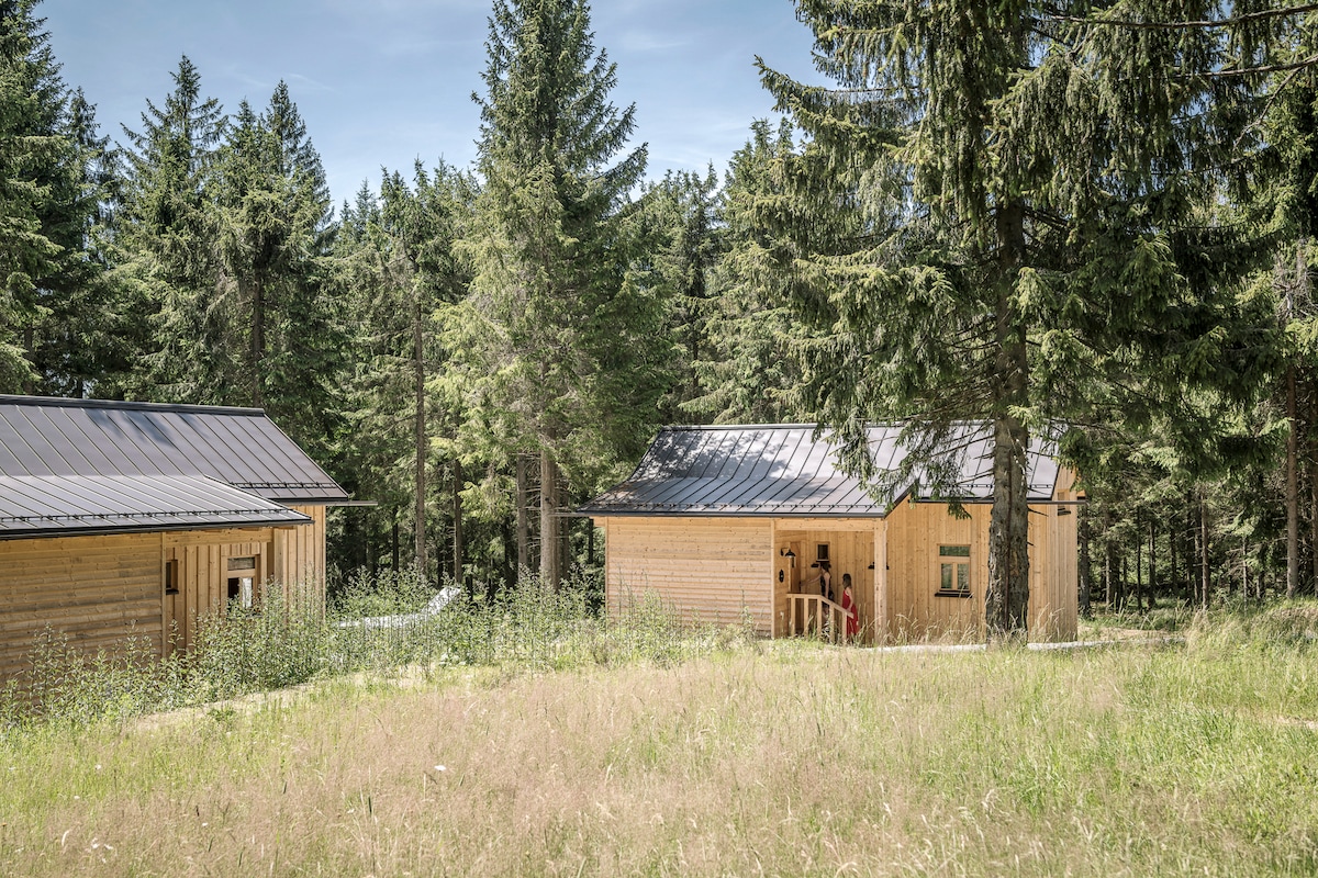 En medio del bosque bohemio en un pequeño claro se encuentra la "Waldbauernhaus", una acogedora cabaña de madera maciza para 4 a 8 personas. En 75 m2, además de los dos dormitorios, también hay 2 galerías de dormir con 2 camas cada una, una cocina bien equipada y una acogedora sala de estar con chimenea. Encontrarás relajación en la naturaleza y en tu propia sauna con vistas al bosque. Esto también se disfruta desde la terraza del piso del bosque. Las rutas de senderismo y la pista de esquí de fondo comienzan directamente desde la puerta principal.