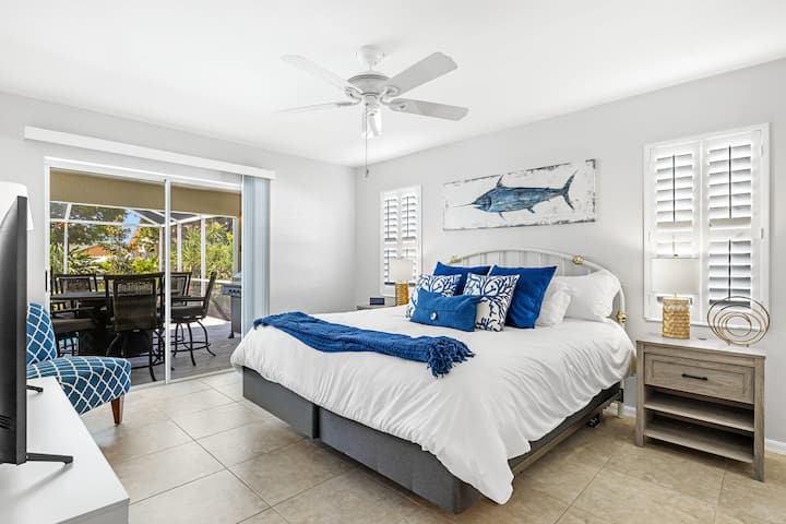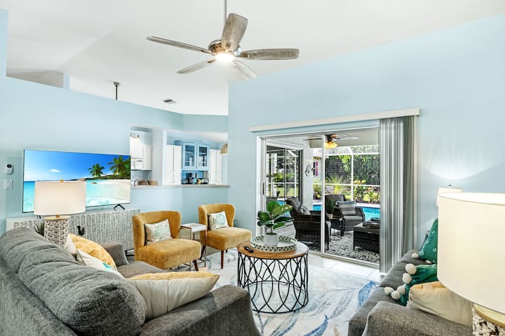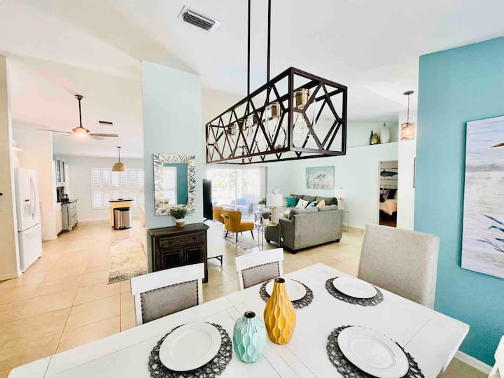 ¡Reserva nuestra casa bien cuidada con piscina climatizada con techos abovedados en la hermosa SE Cape Coral! A solo 10 minutos en auto del centro de la ciudad, del parque acuático Sun Splash y a pocos minutos de tiendas, restaurantes y la reserva ecológica. A menos de 35 minutos a Ft. Myers Beach y Sanibel. ¡Los lujosos muebles nuevos, la mesa de la chimenea, el exuberante y colorido patio, y la piscina climatizada renovada con fuente de jarrones proporcionan una experiencia increíble!