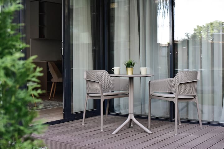 - Renta de alojamientos vacacionales con área de asientos al aire libre en Kaunas