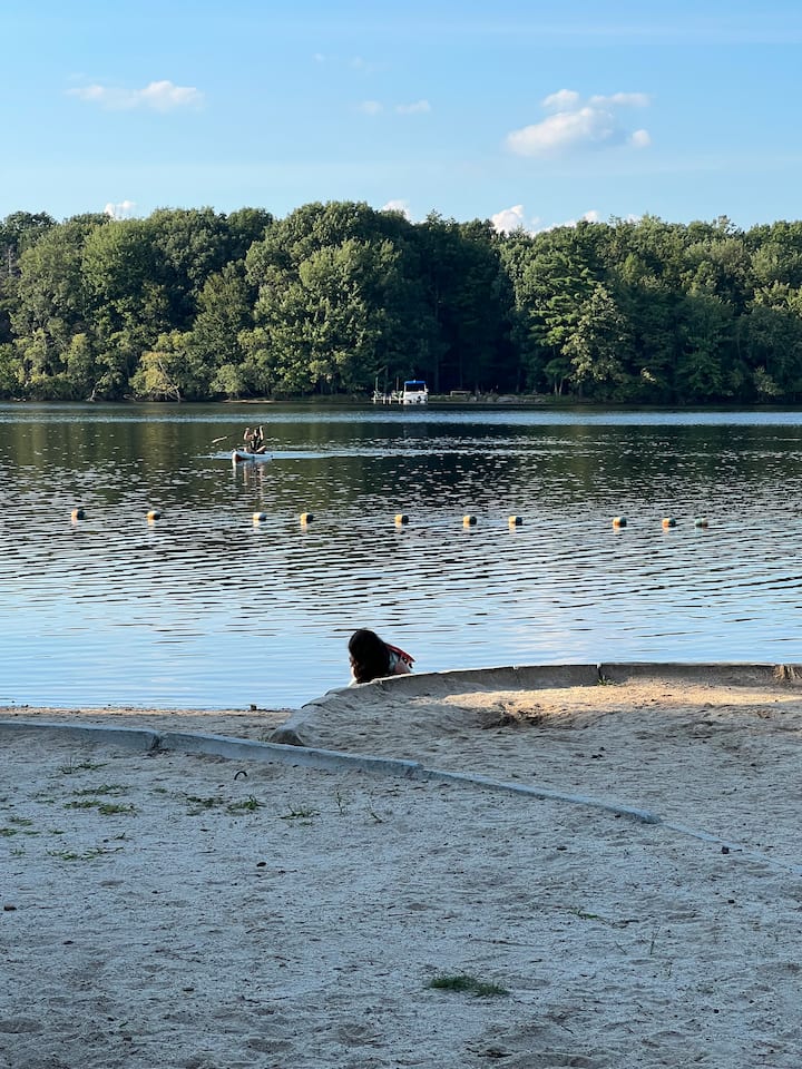 Este alojamiento está justo al lado de este lago: Bear Creek Lake.