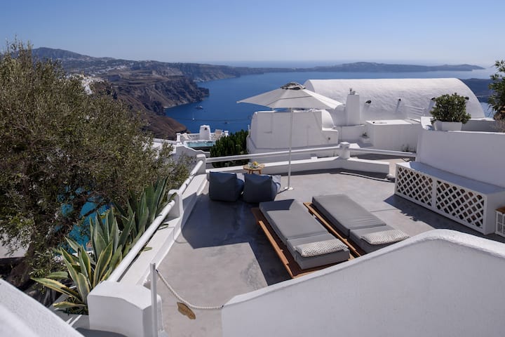 - Renta de alojamientos vacacionales con área de asientos al aire libre en Santorini