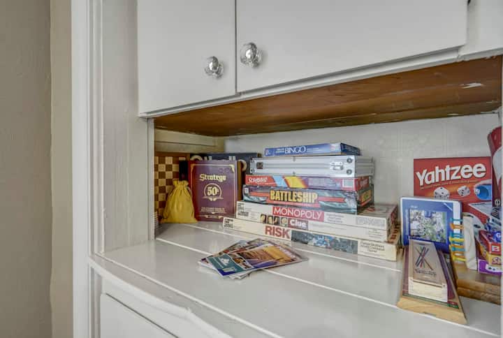 Relájate en el cómodo sofá y disfruta de tus programas favoritos en el gran televisor de 55pulgadas con wifi rápido. Inicia sesión en tus propias cuentas de Hulu, Netflix y otras cuentas con facilidad. ¿Necesitas ponerte al día con el trabajo? Hay un área de escritorio solo para eso, además de un reproductor de radio retro/mp3 genial para establecer el estado de ánimo. Relájate en las acogedoras sillas de ala para charlar. Ajusta la temperatura con el termostato inteligente para tu comodidad.