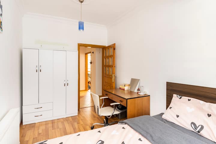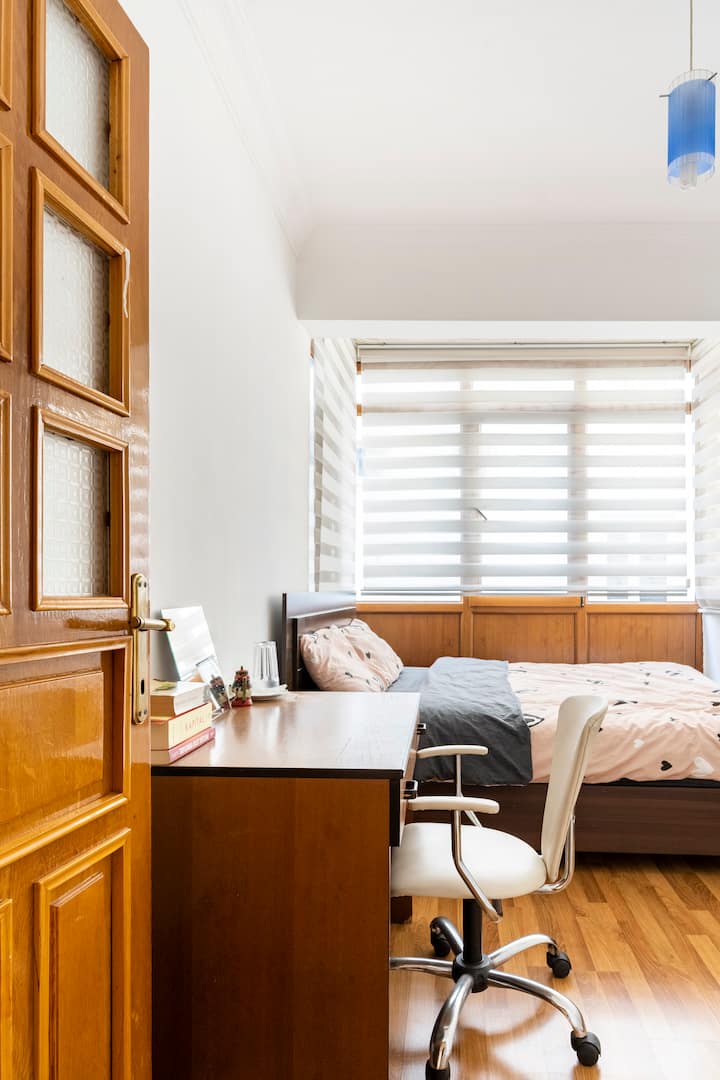 Una habitación solo para ti en un alojamiento, con acceso a áreas compartidas.