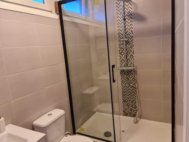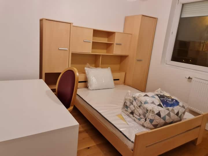 Una habitación solo para ti en un alojamiento, con acceso a áreas compartidas.