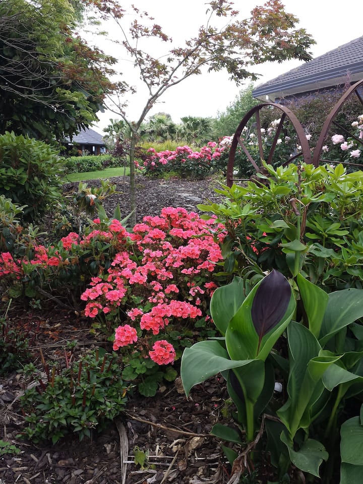 Tenemos 5 acres con jardín de 2 acres que disfrutamos compartir con nuestros visitantes.