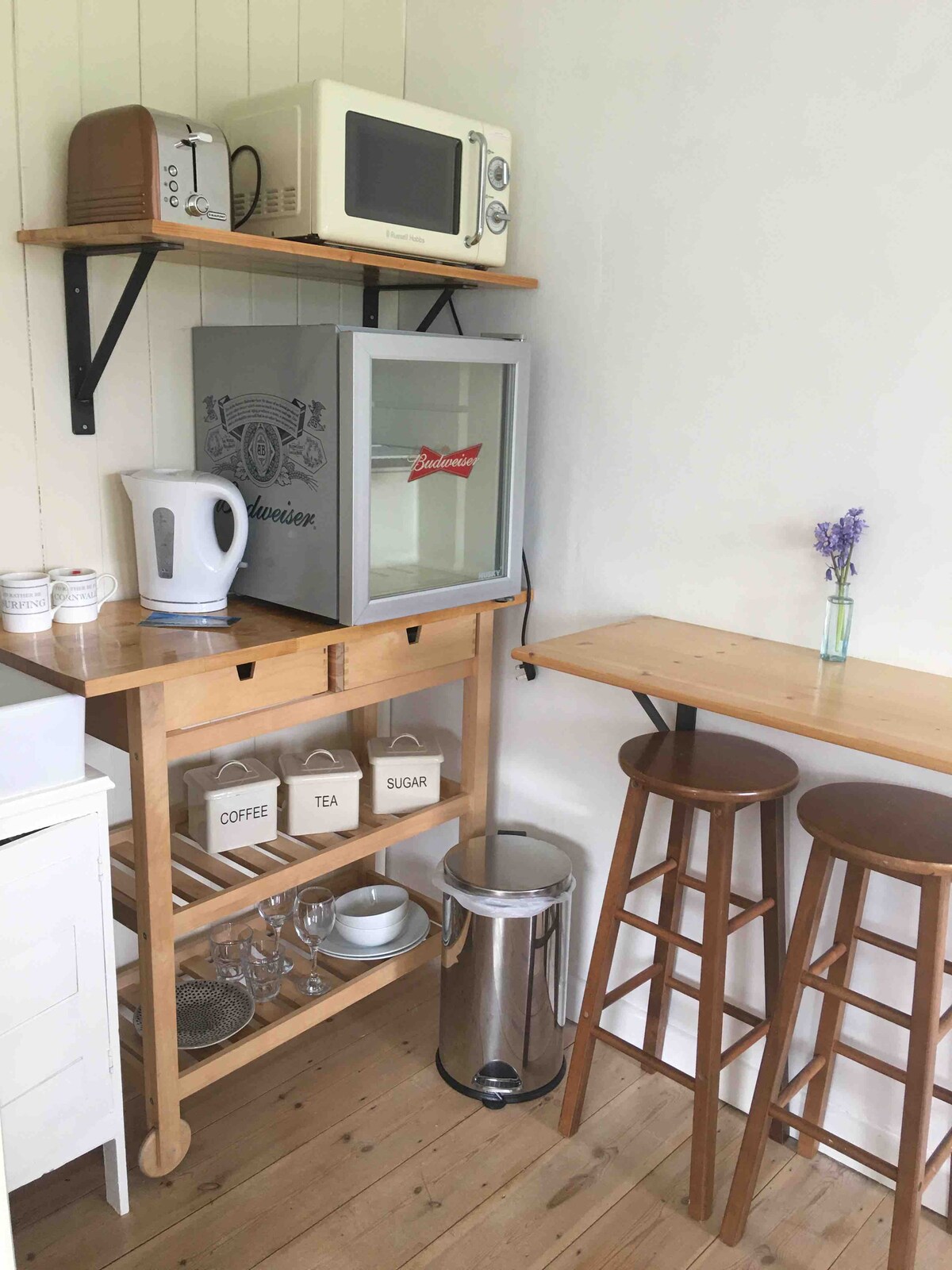 Elegante casa de playa estudio con vistas a la impresionante bahía A 3 minutos a pie de un excelente pub o 2 fabulosas cafeterías de playa. ¡Vistas increíbles desde todas las ventanas y puedes escuchar, ver y oler el mar salado desde tu cómoda cama ! Relájate y observa una hermosa puesta de sol sobre el mar con una bebida o una barbacoa en tu propia zona de jardín con su banco y mesa Autocontenido con llave Aventúrate a la playa y observa a los surfistas sube por el sendero costero y descubre una bahía aislada O explora un paseo por el bosque... Solo disfruta de la hermosa Cornualles