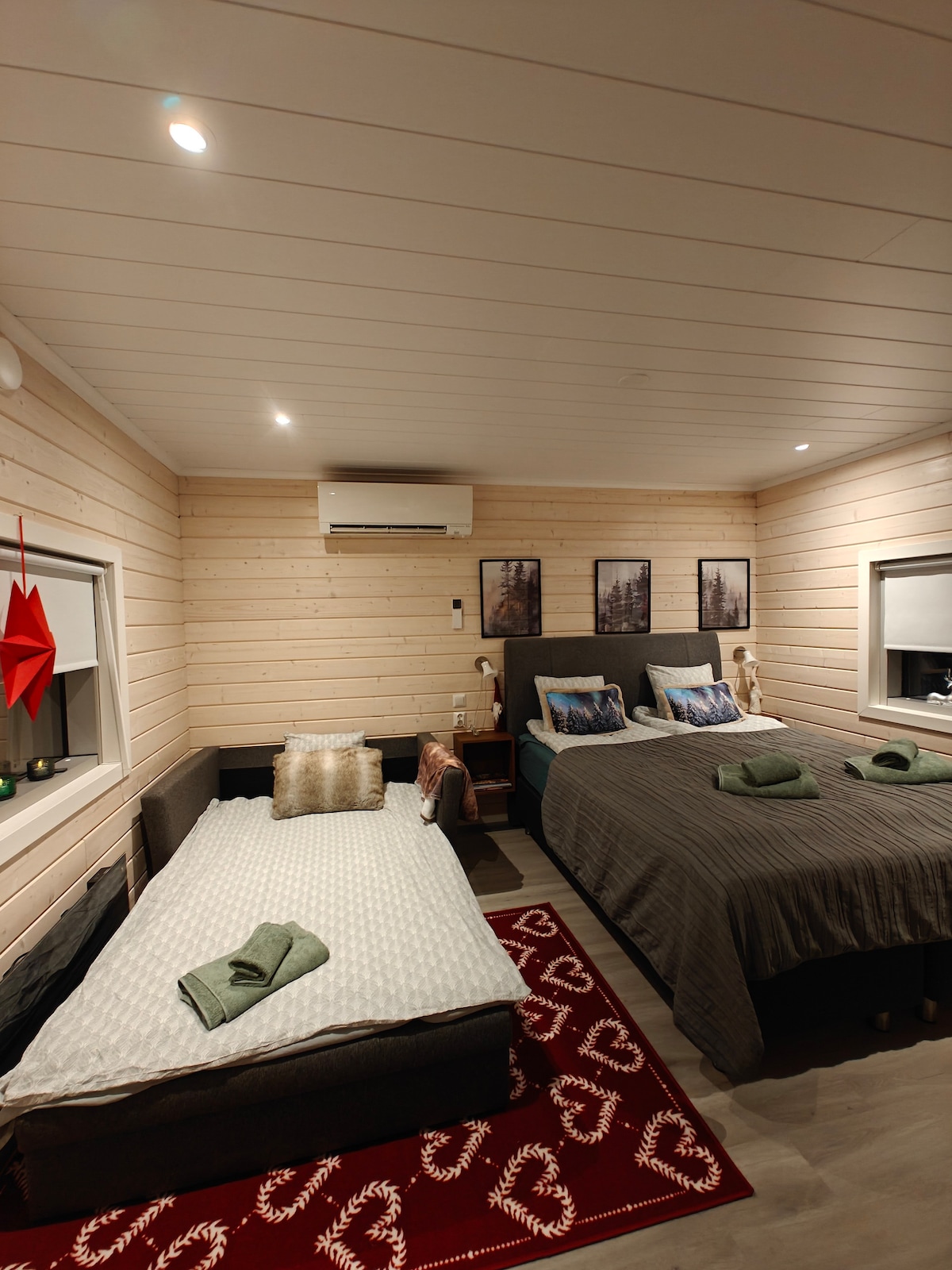 ¡Te damos la bienvenida a nuestra nueva cabaña! La cabaña está situada en el borde de nuestro patio, ofreciendo paz y privacidad, aunque el centro de la ciudad de Rovaniemi está a solo 10 minutos en auto (7 km) y el pueblo de Papá Noel, el aeropuerto y la estación de tren están a unos 15 minutos en auto (10 km). Estacionamiento gratuito justo al lado de la cabaña. Las pistas de esquí de fondo están a unos 500 m y las pistas de esquí y el campo de golf están a unos 4 km. Podemos alojar hasta 3 personas: 2 en cama doble/camas individuales + 1 en un colchón o cuna.