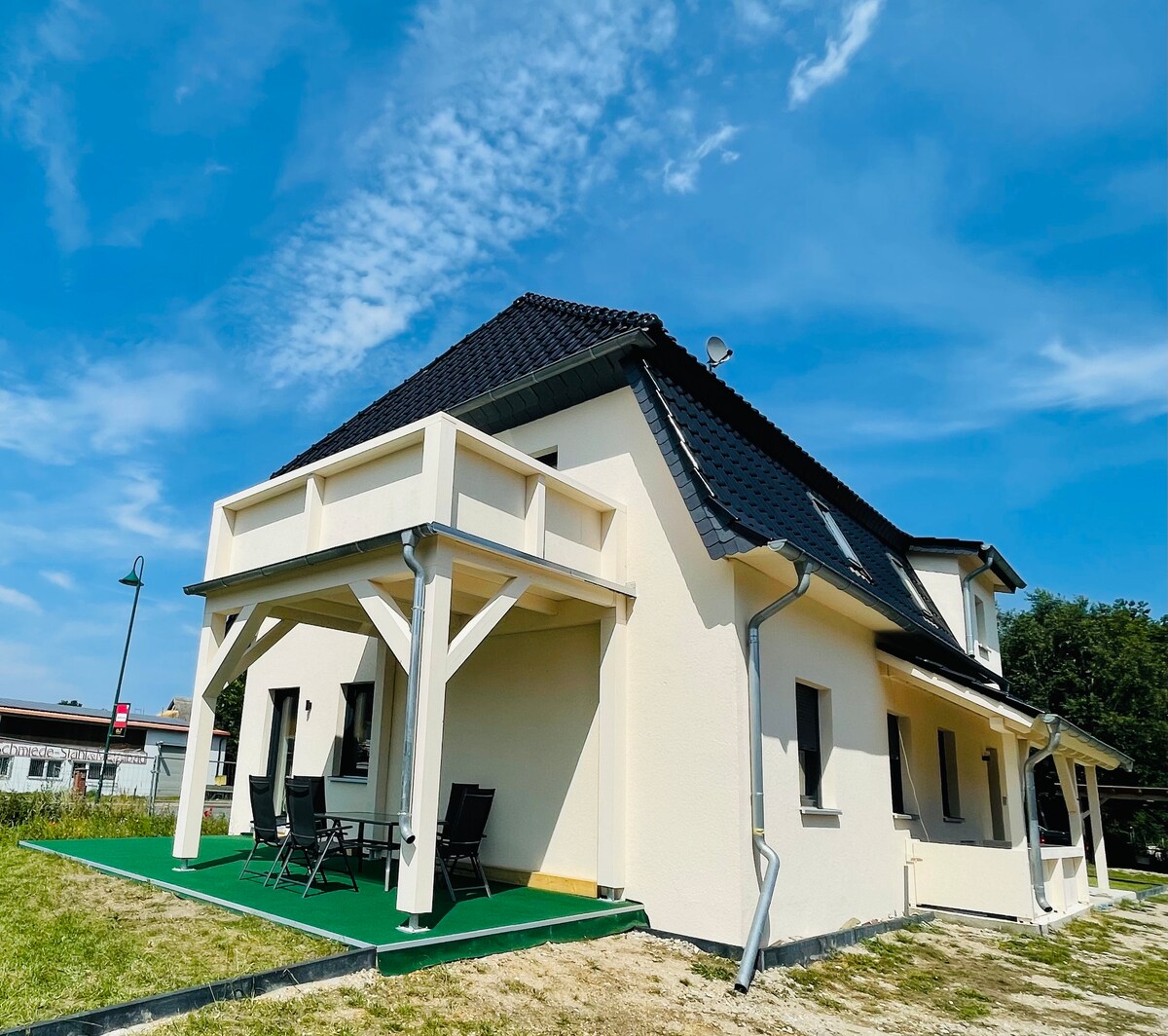 ... mira desde tu cama al agua, disfruta de la paz y la tranquilidad y escucha el susurro del bosque de hayas, experimenta recorridos en bicicleta directamente en el agua y disfruta de la naturaleza. Una hermosa, moderna y rústica casa de entramado de baja energía con tejado de paja, azulejos marroquíes, tablas de roble y paredes de yeso de arcilla te espera. Para las actividades hay un hermoso jardín grande con un columpio en el bosque, sauna de vapor gratuita, ducha y bañera al aire libre, una tabla de paddle surf, un barco de pedales y 4 bicicletas.