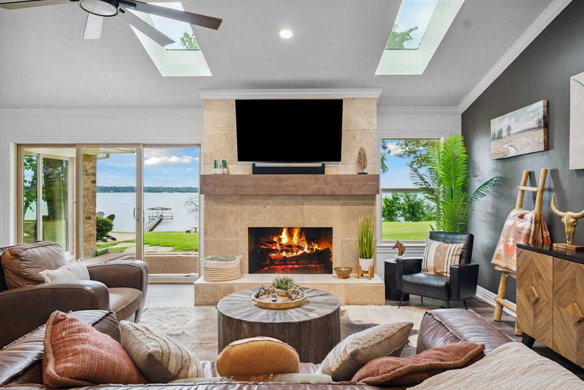 Diviértete con la familia en esta elegante casa de campo totalmente remodelada. Un montón de áreas al aire libre para pasar el rato junto a un fogón o cenar al aire libre. Lo sentimos, no se permiten mascotas. WIFI, juegos de mesa, lavadora/secadora, cocina con encimeras de granito, microondas, ollas y sartenes, platos y cubiertos. En la parte trasera de la propiedad, NO hay acceso al lago, pero hay una maravillosa vista al lago y una entrada desde el lago. No se admiten mascotas. Si se trae una mascota a la propiedad, se aplicará una tarifa de $200.
