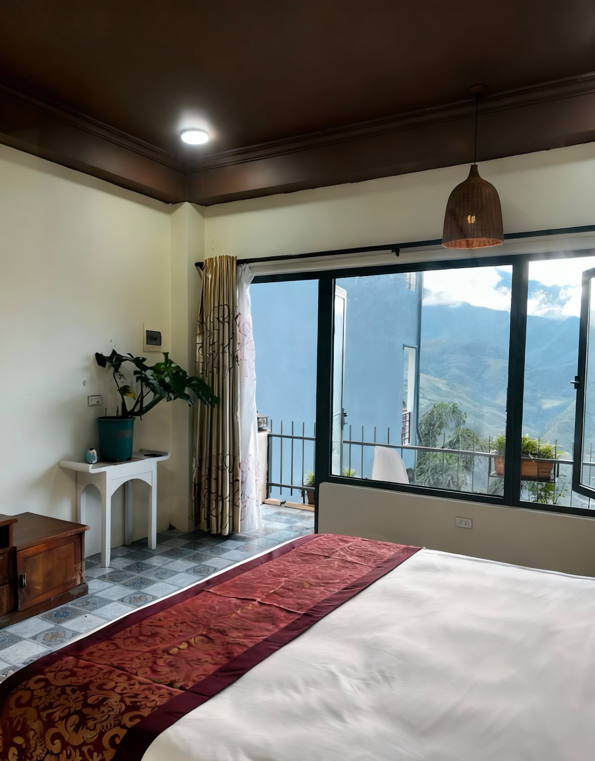 Bienvenido a nuestro encantador bungalow, donde puedes despertar con una de las vistas más impresionantes de los campos de arroz en terrazas en Sapa. Con grandes ventanales de vidrio, nuestra acogedora habitación ofrece un panorama ininterrumpido, lo que te permite sumergirte en la belleza de la naturaleza. El sereno amanecer desde tu cama hará que tu estadía sea realmente inolvidable. ¡Ven y experimenta la mezcla perfecta de comodidad y paisajes impresionantes en nuestro refugio en la ladera!