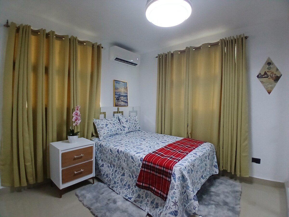 ¡Bienvenidos a su hogar en Santiago de los Caballeros! Nuestro cómodo y recién construido apartamento ofrece la combinación perfecta de comodidades modernas y un espacio tranquilo. Ubicado en un sector sereno, este acogedor apartamento de 2 dormitorios y 1 baño es ideal para familias, parejas o viajeros de negocios y vacaciones que buscan una estadía relajante. ¡Esperamos recibirlo y hacer que su visita sea memorable!
