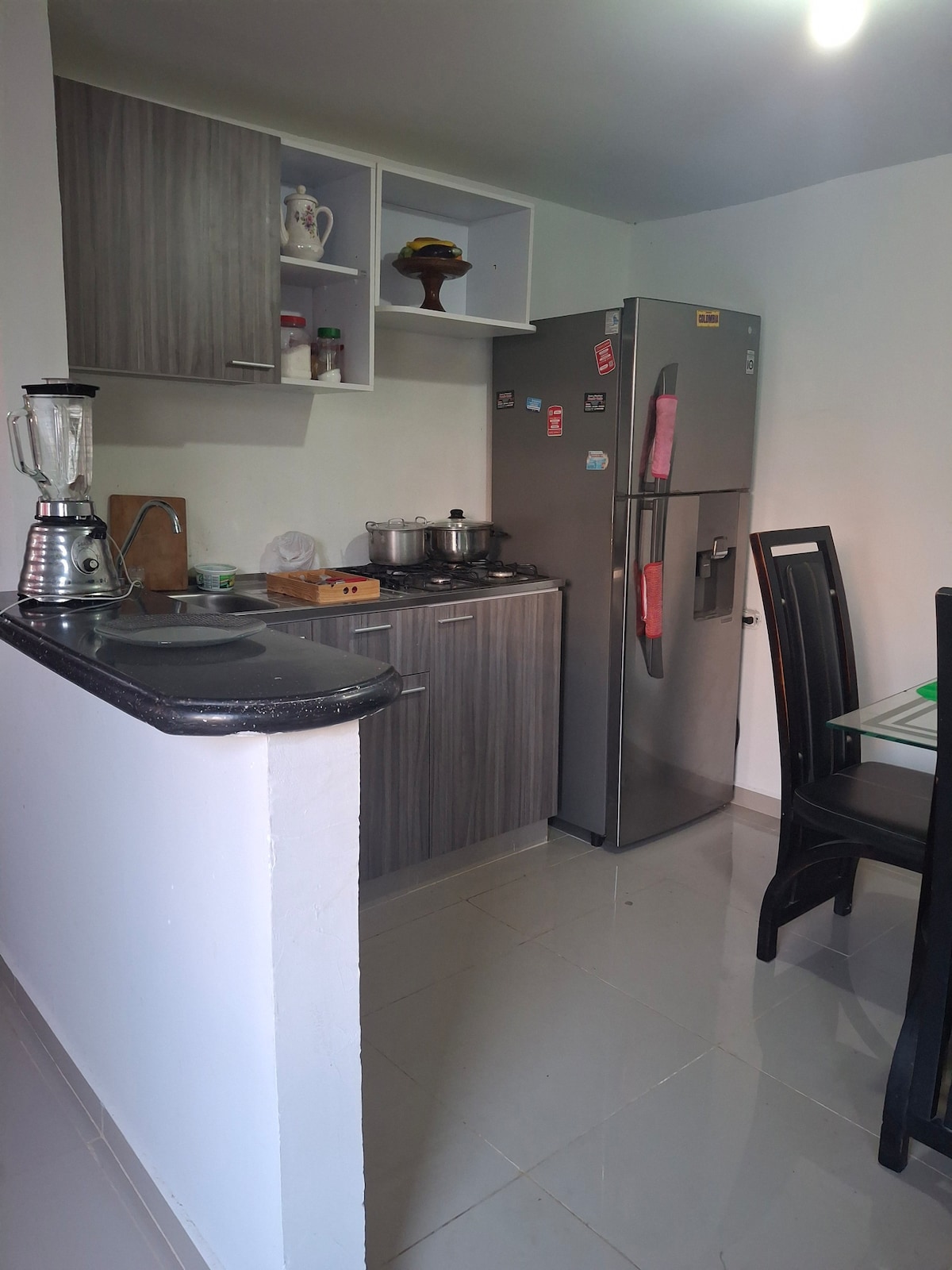 Es un apartamento, completamente independiente y exclusivo para el huésped, con 2 habitaciones, dos camas dobles, un sofacama, 2 baños, aire acondicionado, cocina completa y equipada, barra desayunadora, área de labores con lavadero manual y lavadora automática, nevera, Internet, Televisor smart, Tv cable, Netflix, Disney+, limpieza semanal gratuita para estancias largas si lo solicita.