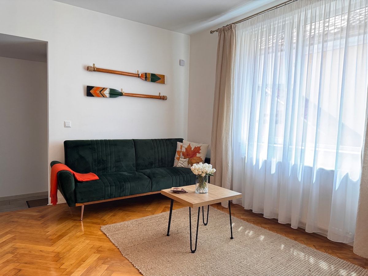 Alójate en nuestro apartamento de 2 dormitorios de diseño único a solo 2 minutos a pie de las caminatas por la montaña Tampa y a 10 minutos a pie de Piața Sfatului. Disfruta de comodidades modernas, tiendas cercanas y estacionamiento privado. Perfecto para familias o amigos que exploran la naturaleza y el centro histórico de Brașov.