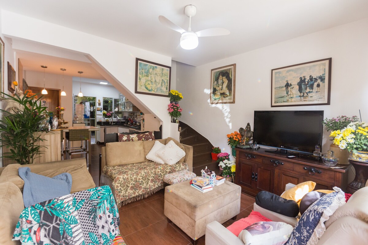 Divirta-se com toda a família neste lugar cheio de estilo e muito verde. Casa com 2 quartos (sendo 1 suite) e outro quarto com 3 colchoes de solteiro de alto padrão Emma, casa inteira em estilo rústico industrial, piscina, área gourmet com churrasqueira, mesa de madeira maciça para 8 lugares, próxima ao metro praça da árvore (600m) , lavanderia e mercado exatamente na frente da casa, bairro tranquilo e com tudo proximo. Toda casa está preparada para home office, com wifi por toda residência.