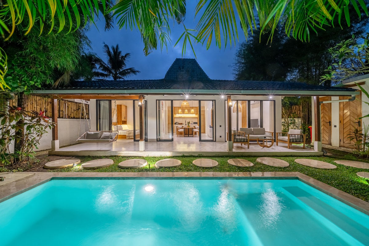 Zona libre de inundaciones. Bienvenido a Villa Dwipa ☀️ Un lugar donde puedes disfrutar de la belleza y el lujo de una villa de bambú completamente privada y todas sus instalaciones rodeadas de naturaleza pacífica 🍃 Desde un chapuzón en la piscina privada, ver una película en la pantalla de cine desplegable y tener una fiesta sin vecinos en la sala de estar hasta pasar un tiempo de calidad tranquilo, relajarse cómodamente en el balcón y todo lo demás, ya sean amigos o amantes, te garantizamos un buen rato. 😊