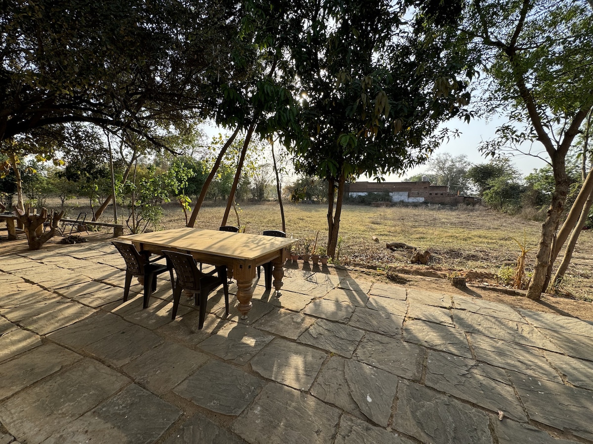 Descubre un alojamiento donde la cultura se une a la comodidad. Nuestra casa de familia cuenta con dos habitaciones de diseño único:- 1. El nido de los Warli 2. El nido dorado Cada uno ofrece una atmósfera distinta inspirada en la belleza de la cultura tradicional. A poca distancia a pie de la entrada de la reserva de tigres de Panna. A solo 20 km del aeropuerto de Khajuraho y a poca distancia de la estación de tren de Khajuraho en taxi, rickshaw o autobús. Más allá del safari, descubre templos históricos en Khajuraho, impresionantes cascadas y pueblos tradicionales cercanos.