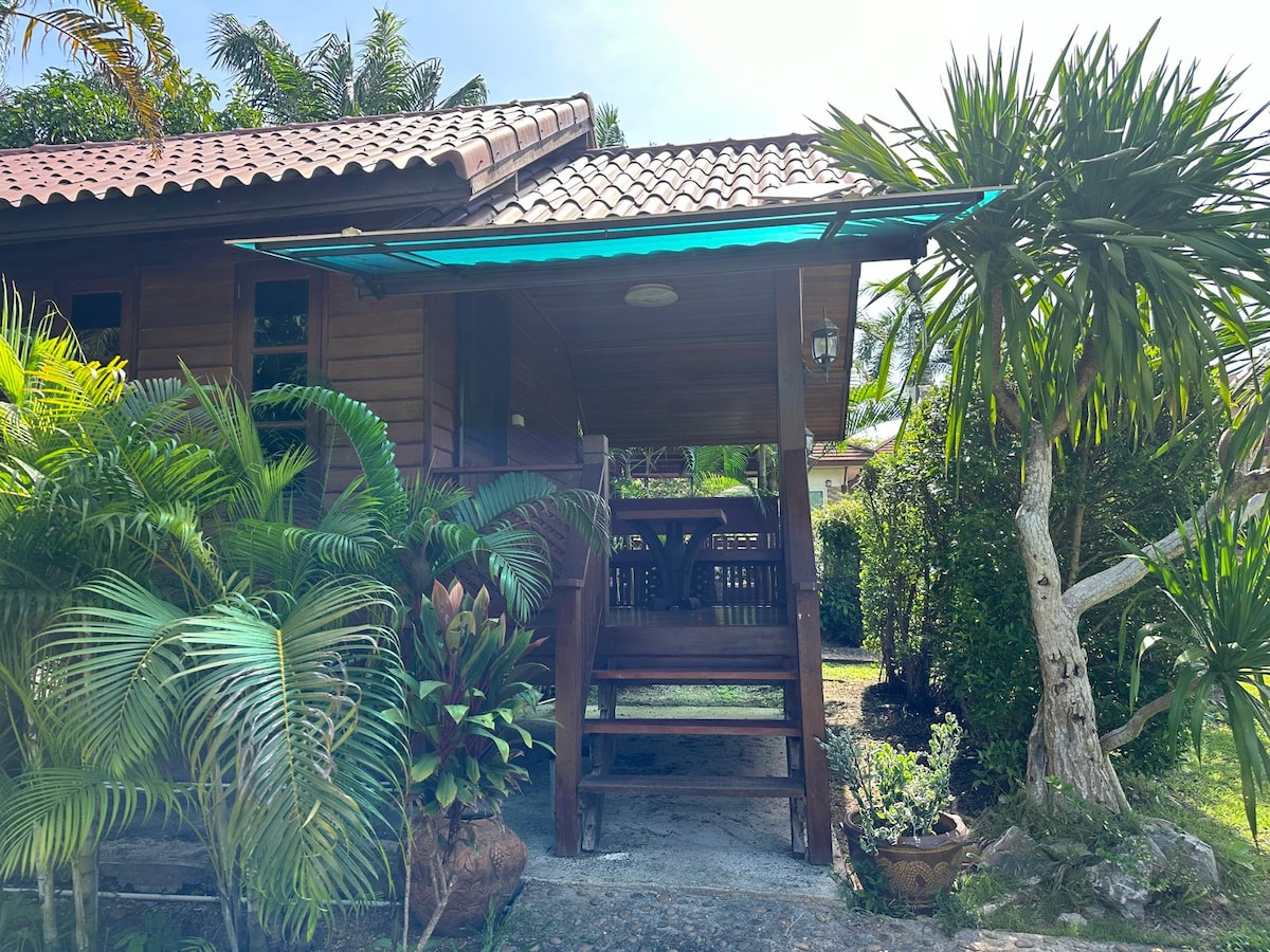 Disfruta de una vida sencilla en nuestra única casa de madera de estilo tailandés tradicional que se encuentra en Baan Narapas Project, área local de Soi Khao kaeo 1, Aonang, Krabi. 🏡El bungalow ofrece - Cómoda cama tamaño king - TV inteligente - aire acondicionado ❄️ - Espacio de trabajo con wifi de alta velocidad.💻 - Cocina bien equipada🍽️ - baño con agua caliente - Área de estar en la terraza. - Hermosa vista al jardín. 🌿🌺 Ps. Se encuentra justo delante del gimnasio Mauy Thai🥊, por lo que podría haber algo de ruido del entrenamiento.