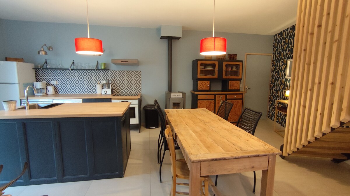 Este alojamiento ocupa un antiguo establo abovedado , al que hemos añadido una construcción más moderna para el acondicionamiento de una cocina y un baño. Hemos tratado de aportar un ambiente cálido y poético, utilizando una mezcla de piedra y madera. Gracias a la gran puerta de cristal este apartamento es luminoso. A veinte minutos a pie, se puede llegar a un plan de agua (en verano). Numerosas rutas de senderismo o en bicicleta.