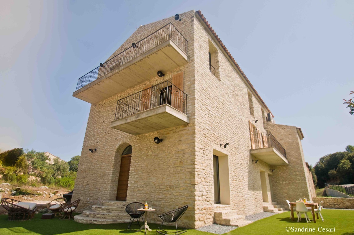 This mansion was built by Corsican actor Pierre Massimi more than 40 years ago. Restored in a Corsican spirit, this luxury guest house on Île Rousse has been completely renovated and offers comfortable rooms. Each room and each space respects the Corsican soul and the charm of this ancient building. You will be seduced by the voluptuousness of the decoration, the modern equipment, the authenticity of the works of local artists and the standing of the offered services. You’ll enjoy being in the