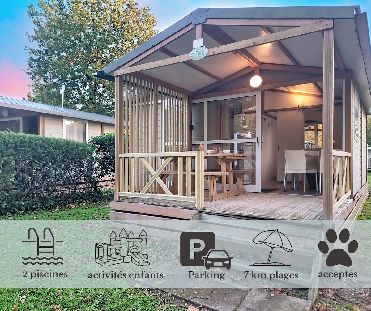 Bienvenido a P'tit Kabana 1, pequeño chalet en el corazón de un camping 4★ (Camping KABANA Village) tranquilo y agradable, a solo 7 km de las playas. Disfrute de las 2 piscinas climatizadas (interior y exterior), parque infantil, bar-restaurante y entretenimiento de verano, en este entorno tranquilo en el pinar. El chalet tiene 2 dormitorios, 1 baño y una terraza cubierta ideal para sus comidas al aire libre. ¡Camping abierto todo el año!