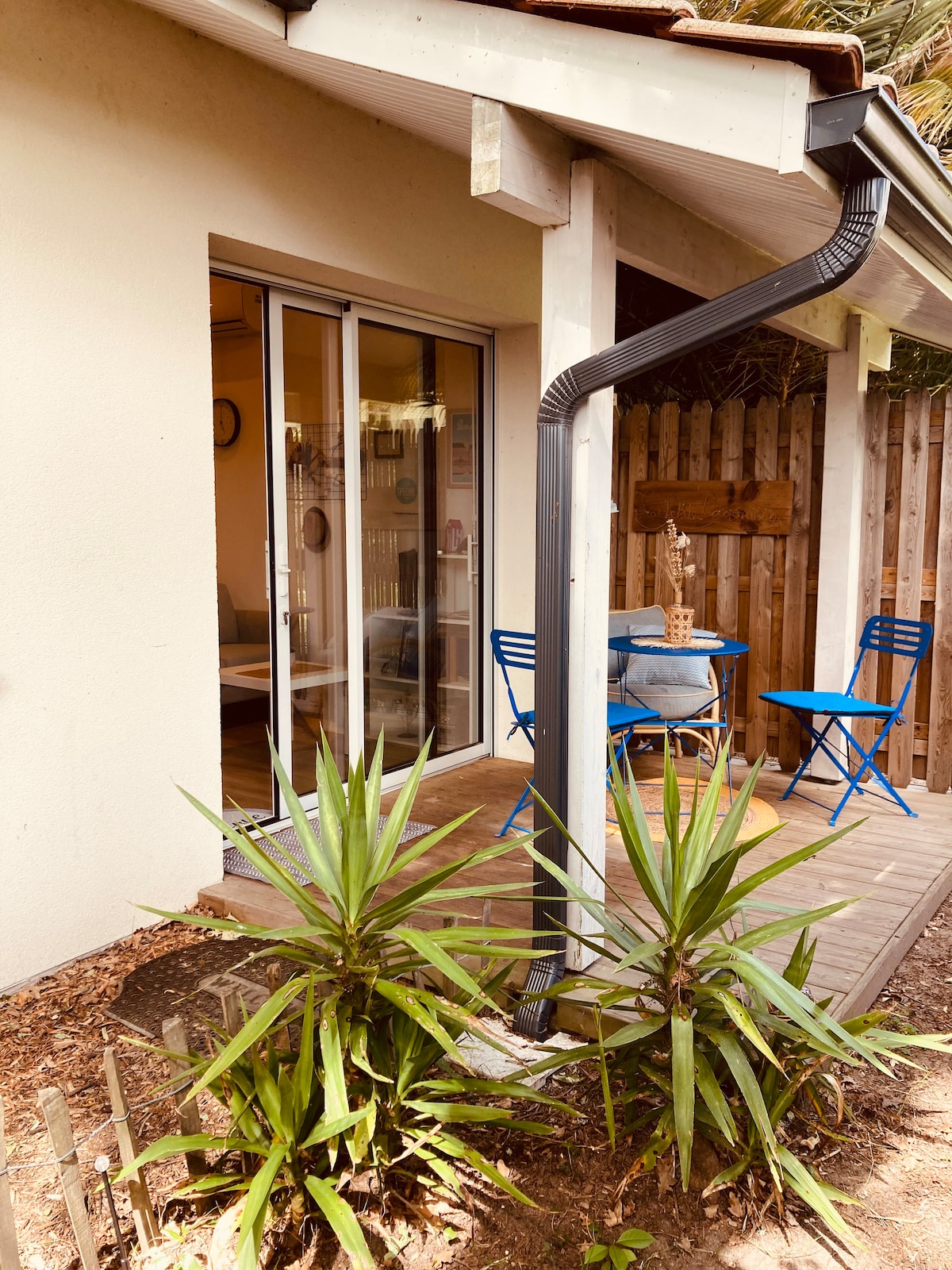 Bastante pequeña casa nueva con aire acondicionado, ubicada en una ubicación muy tranquila. Ideal para una pareja con niños que buscan relajarse y visitar la región de Aquitania (15 km del centro de Burdeos, 20 minutos de Bassin, 30 minutos de Cap Ferret, Lacanau y Arcachon). Cerca de las áreas de servicio de Pessac/Mérignac, el alojamiento es ideal para viajes de negocios. El jardín privado con árboles tiene una bonita terraza de madera exótica que te permite tener un almuerzo/cena/aperitivo tranquilo cerca de la naturaleza.
