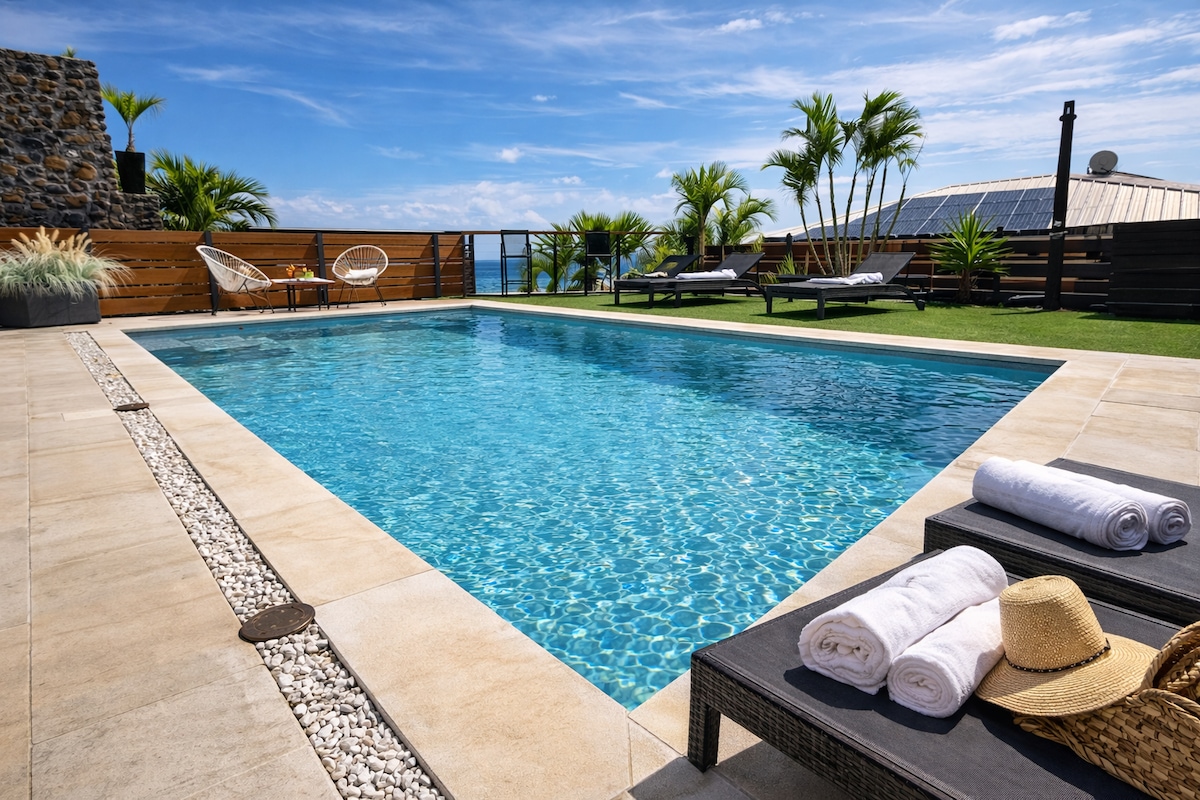 Villa de lujo, para una estancia relajante mecida por las olas, con estas maravillosas puestas de sol y el paso de las ballenas en invierno. A pie de agua con acceso directo a la playa, una gran terraza ampliada por una piscina desbordante sin calefacción y su jardín tropical arbolado. Paz y tranquilidad aseguradas. Amplia villa con todas las comodidades para una estancia magnífica en la Reunión. Los impuestos turísticos se le reclamarán a su llegada si no han sido recaudados por el sitio web de Rbnb.