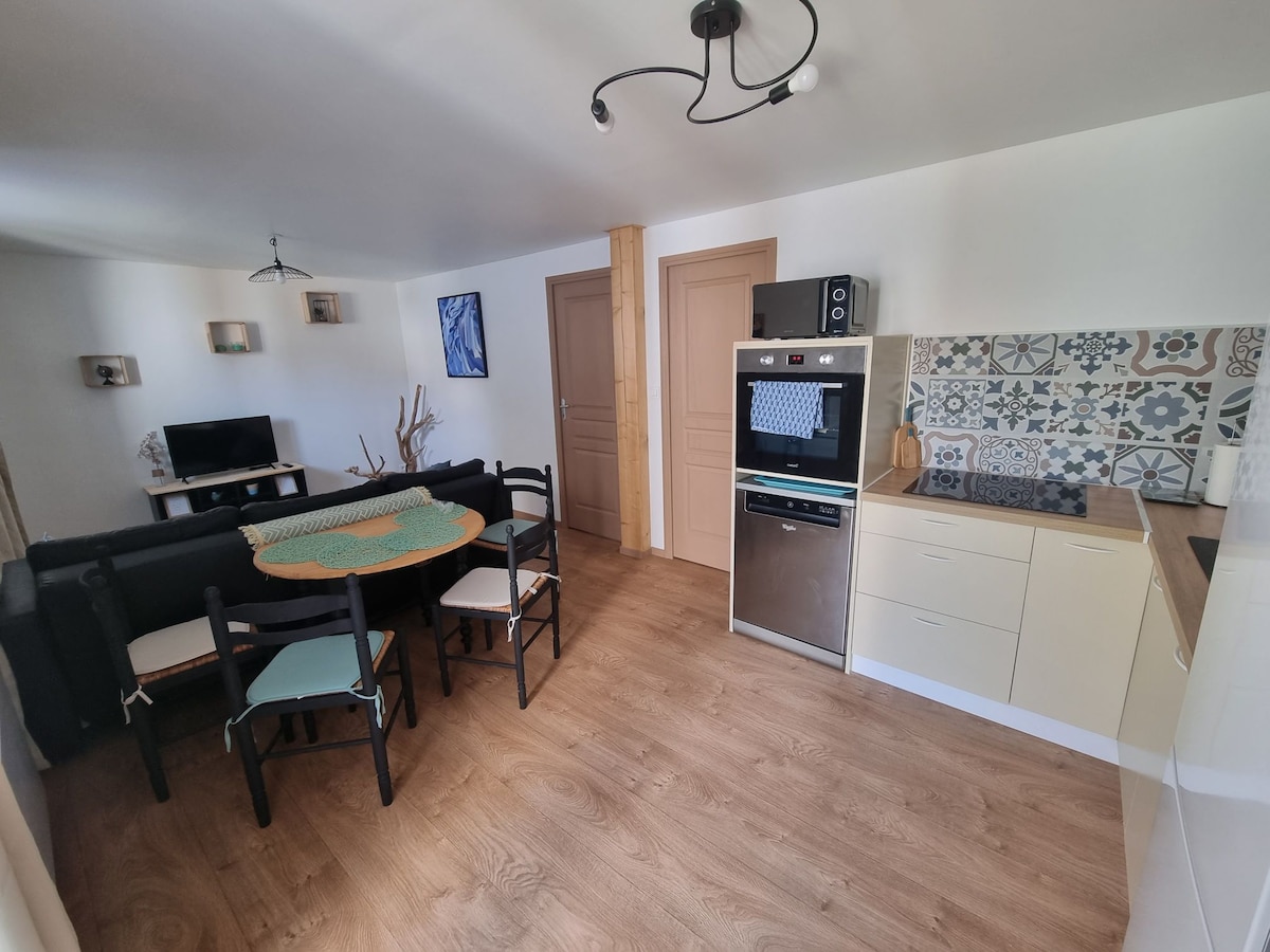 Alojamiento de una sola planta, nuevo y totalmente equipado. Un amplio salón, una cocina con electrodomésticos, dos dormitorios, un baño con inodoro, un jardín privado sin vecinos y una plaza de estacionamiento privado bajo videovigilancia. Alojamiento cerca de todos los servicios (supermercado a 500 m, playa a 3 km...). Se proporcionan sábanas y toallas. Cafeteras de filtro y tassimo. Durante las vacaciones escolares, preferimos estadías prolongadas.