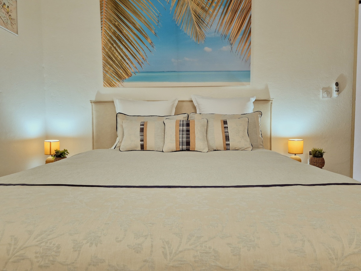 Relájese en un cálido entorno tropical 🌴 Este estudio en la planta baja, totalmente climatizado, le ofrece una terraza privada y una cocina exterior equipada frente a la piscina. A solo 200 m del mar Caribe, disfrutarás de una estancia cómoda y exótica, cerca de todas las comodidades. Un lugar ideal para un descanso relajante o un punto de partida para descubrir Guadalupe.
