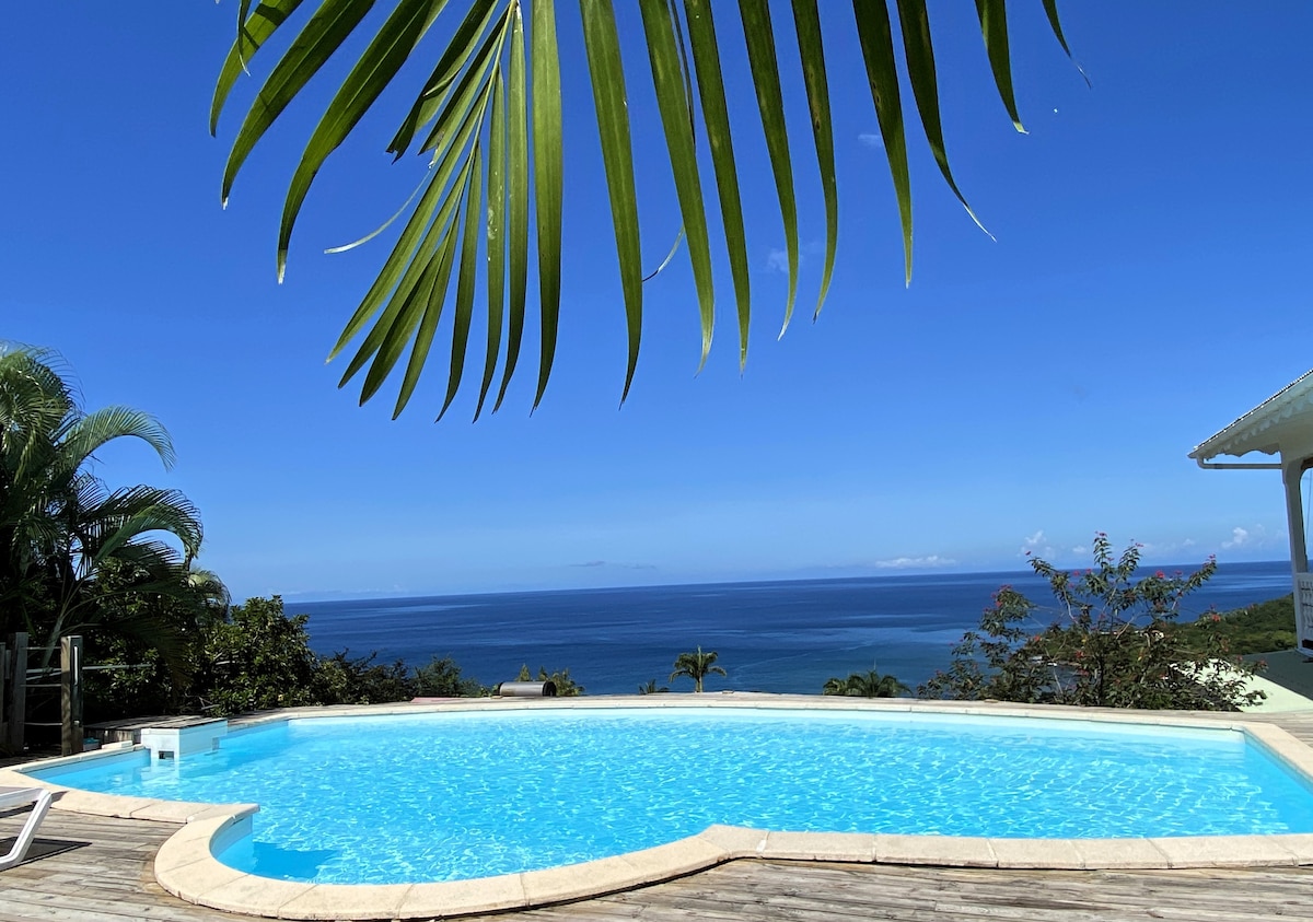 Villa criolla, terraza y piscina privada, vista al mar.